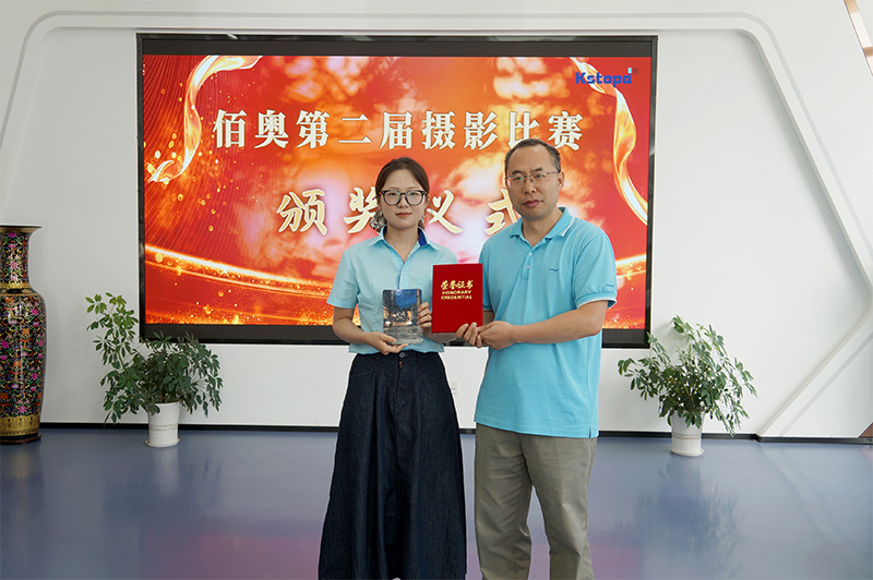 经全体佰奥人投票,三位员工的作品脱颖而出,荣获本届比赛前三名。颁奖仪式邀请到佰奥集团工会主席张主席为选手们颁发荣誉证书。