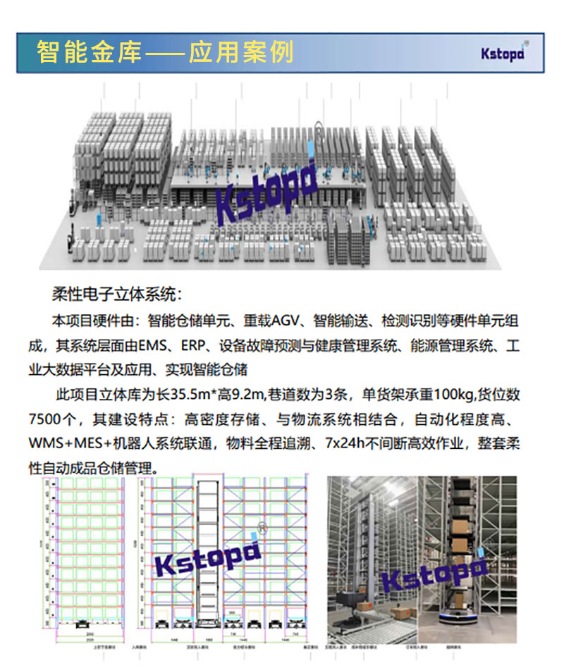 高密度存储、与物流系统相结合,自动化程度高、WMS+MES+机器人系统联通,物料全程追溯、7x24h不间断高效作业,整套柔性自动成品仓储管理。