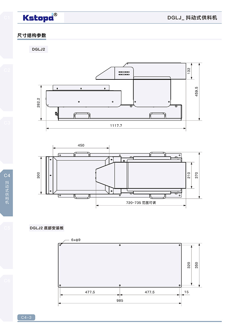 性能: 电压:220V AC 电机功率:400W 减速机:1:10 振幅:6-8 负载能力:最大 15KG