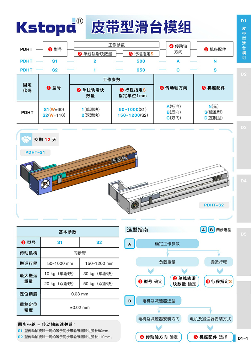搬运行程:50mm~1000mm(S1)/150mm~1200mm(S2)