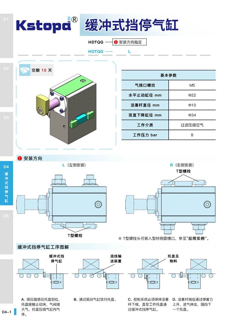 优点: 可有效解决DTQG挡停气缸在阻止载具通过时因载具速度过快引起的冲击问题。可与BSL2.5、BSL3.0倍速链流线、PPDS平皮带输送流线、TPDS同步带输送流线等流线兼容。
